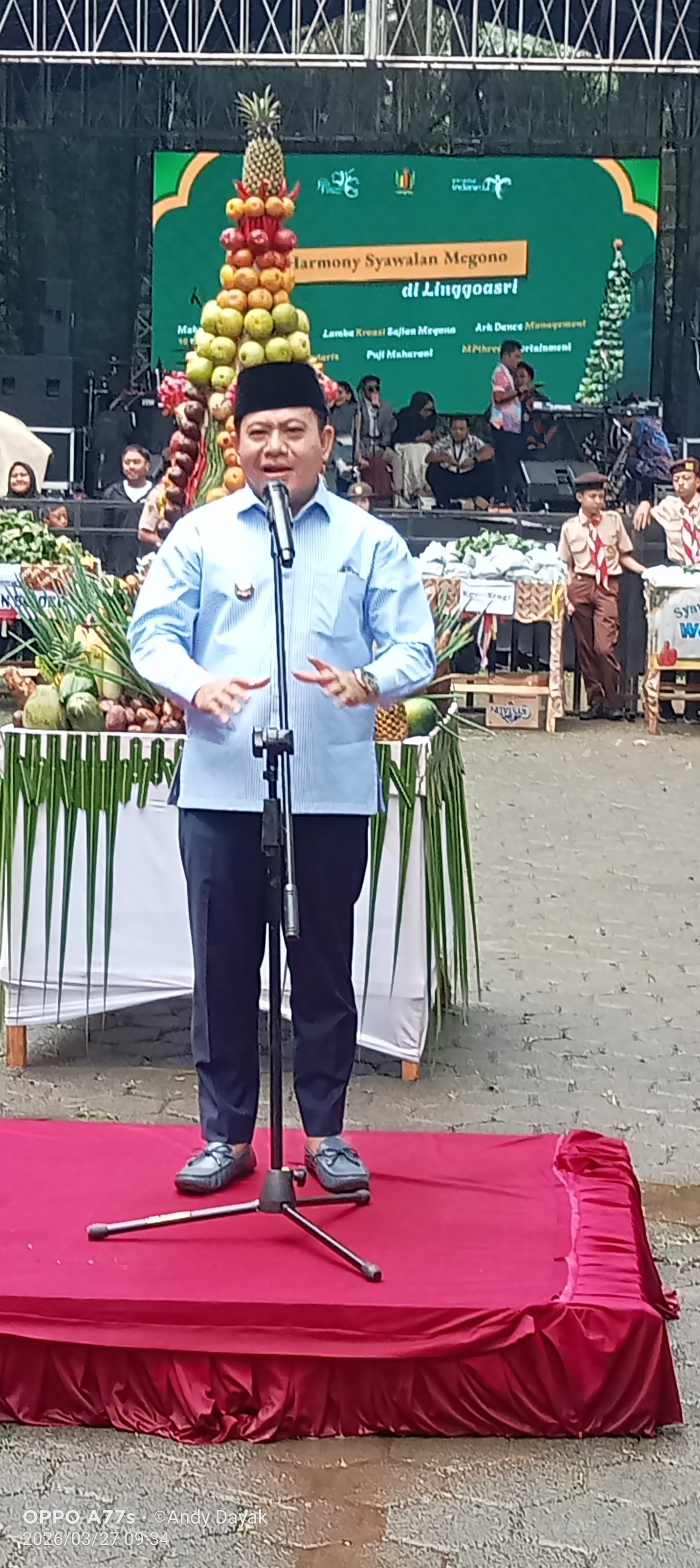 Sekadar informasi, tradisi Syawalan di Linggoasri identik dengan kirab gunungan megono dan hasil bumi yang melibatkan partisipasi dari berbagai kecamatan. Tradisi ini biasanya diadakan sepekan setelah Idul Fitri dan menjadi simbol rasa syukur atas hasil panen serta keberkahan yang diterima masyarakat.