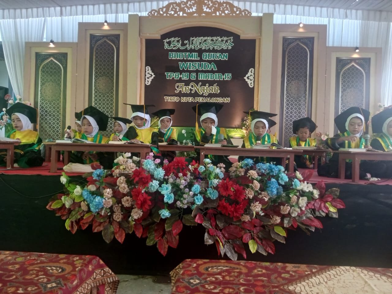 “Untuk tingkat TPQ, anak-anak belajar membaca Alquran dengan baik dan benar, termasuk tajwidnya. Alhamdulillah mereka sudah lancar, bahkan tampil percaya diri saat wisuda,” ujar Sonhaji.